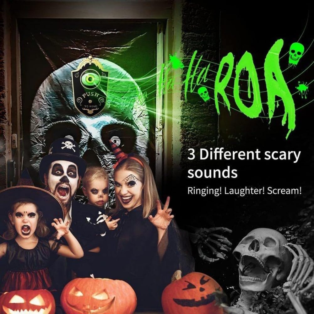 Geef uw Halloween een dreigende gloed met deze bijzondere geanimeerde deurbel.