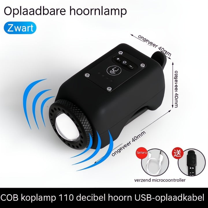 • Inhoud verpakking: 1 × fietslamp met claxon, 1 × USB-oplaadkabel, 1 × afstandsbediening, 1 × gebruikershandleiding