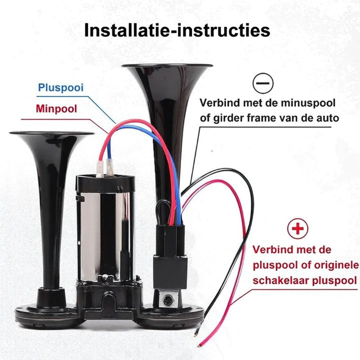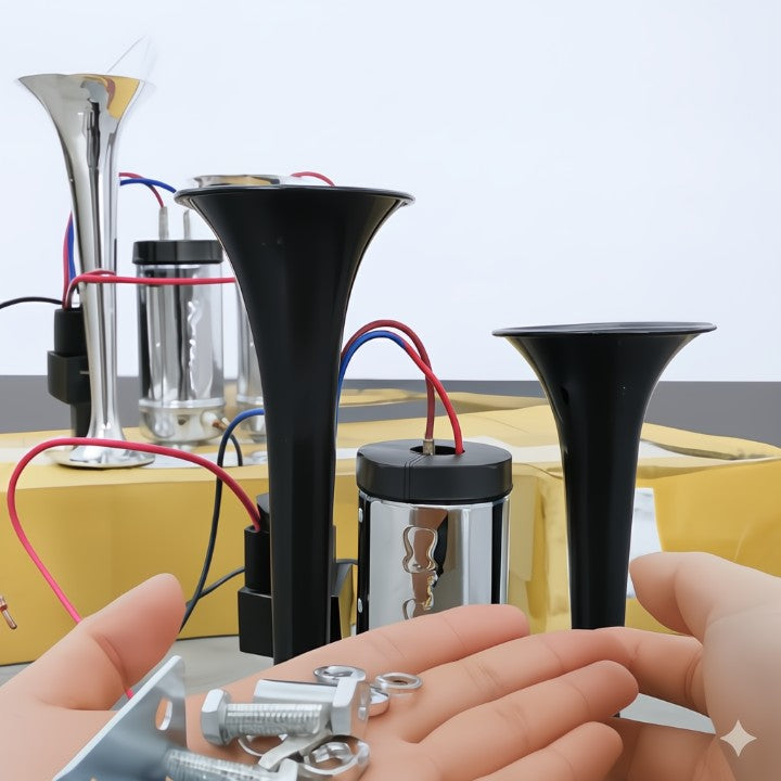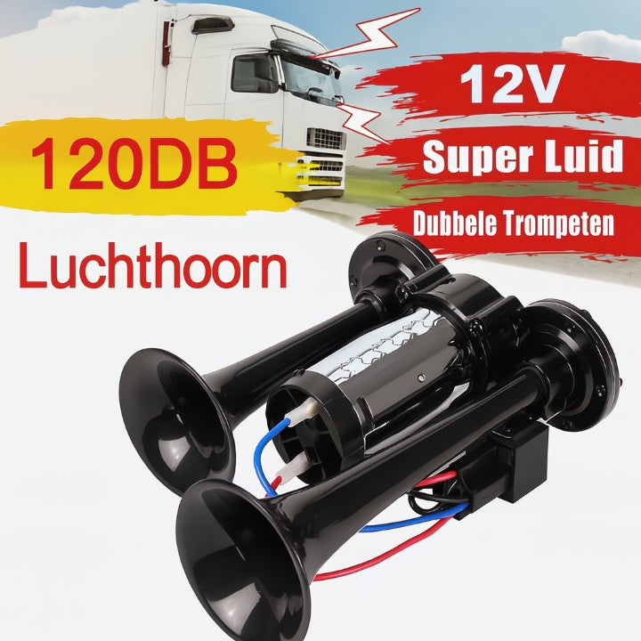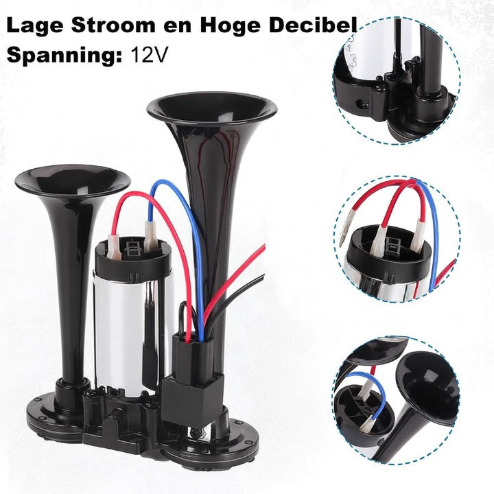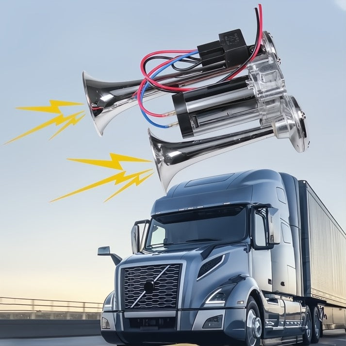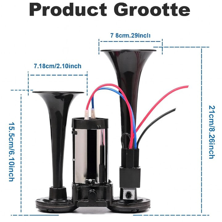 Ontdek het indrukwekkende geluid van onze 12V Trein Luchtfluit met Compressor, speciaal gemaakt om luid en duidelijk gehoord te worden – zelfs als het weer eens tegenzit. Met een stevige 120 decibel zorgt deze toeter dat je écht opvalt op de weg. Perfect voor auto's, vrachtwagens, SUV's, motorfietsen, boten en meer.